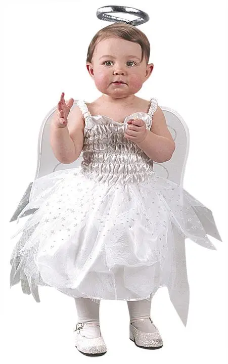 Baby Angel Of Everyone’s Dreams!Costume Includes: White satin dress with White net overskirt, matching wings with attached halo .Available size:
