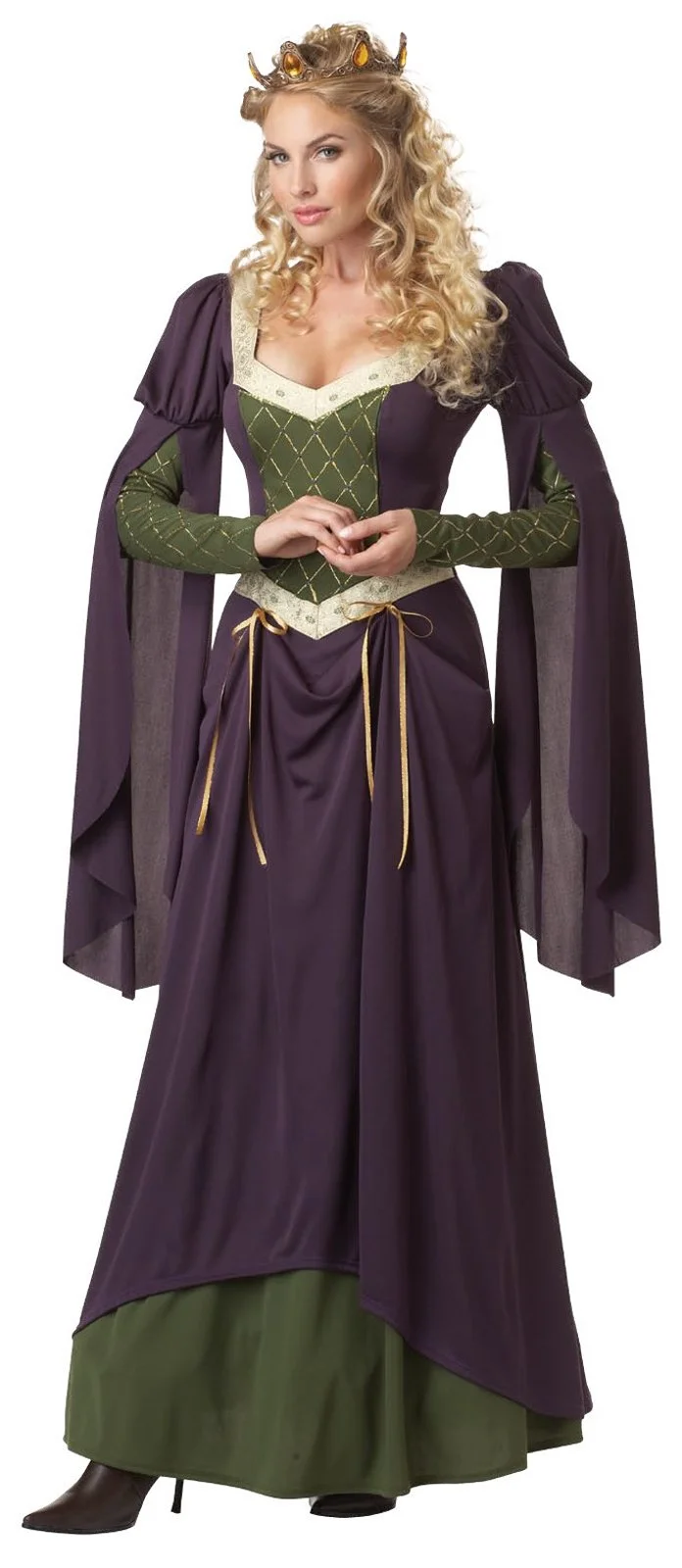 The Lady in Waiting Adult Costume includes a renaissance-style dress that features a square neckline and a faux underskirt. A character crown is also included in this enchanting ensemble. Does not include shoes.
