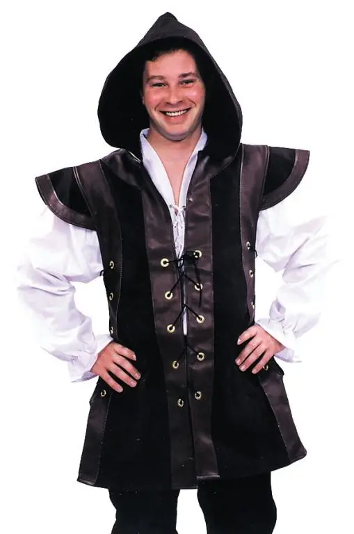 Includes:Handsome tunic style vest with hood. Made of suede-like material and trimmed with imitation leather. Attractive laces add the final touch. Standard size.