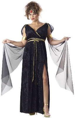 Beautiful Mythical MedusaCostume includes: A velvet black dress, arm bands with drapes and headpiece.Available size:
